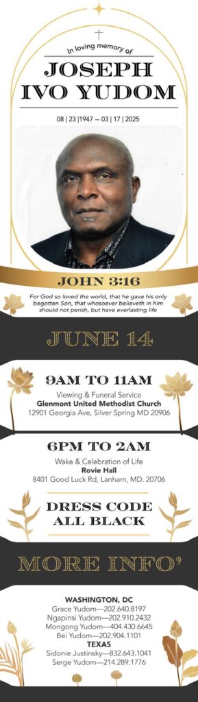 He is survived by his loving wife, eight children, many grandchildren, and the countless lives he touched. One of his sons, SOBAN Serge Olivier Yudom (1986 class), a member of SOBA Dallas, will deeply miss his father’s guidance and love.